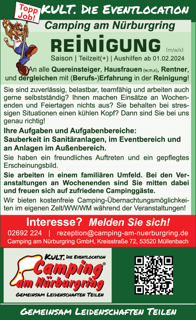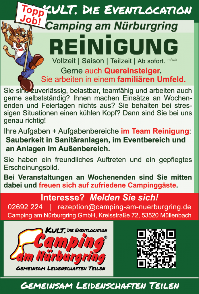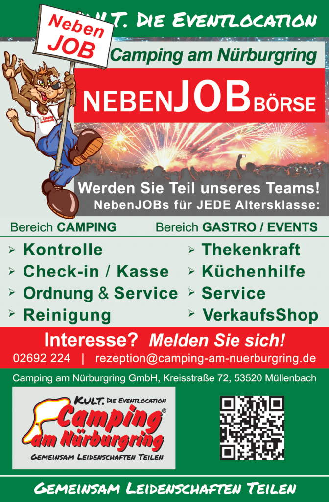 Sie suchen einen interessanten und abwechslungsreichen Nebenjob? Sie möchten neben der Arbeit auch Spaß haben? Sie wollen Rennsport-Atmosphäre am Nürburgring erleben?