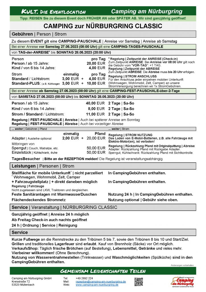AKTUELLE VERANSTALTUNGEN BEI CAMPING AM NÜRBURGRING